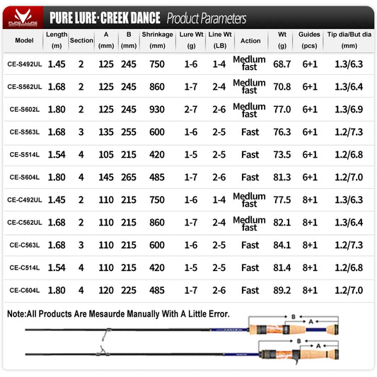 PURELURE CREEK DANCE Trout Rod BFS Fishing Casting UL Spinning Light Travel Rod Stream Ejection Rod Fuji Alconite Ring Perch
