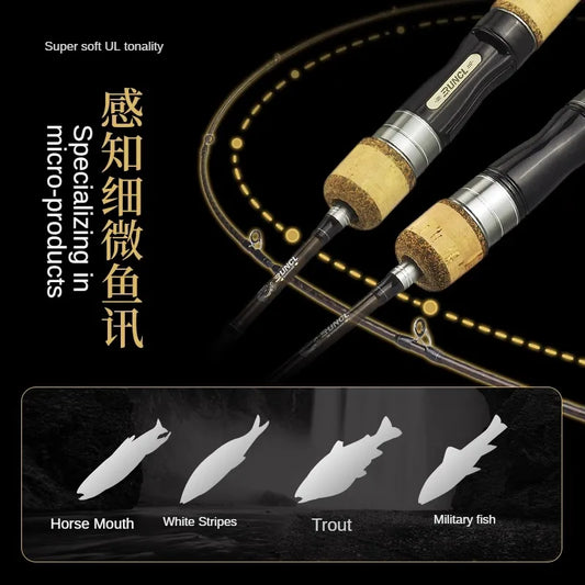 Ejection UL Rod Ultralight High Carbon Casting Trout Fishing Rod Gold Camphorwood Reel Seat FUJI Sic Guide Spinning Travel Rod