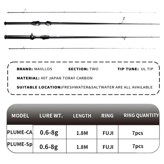 Mavllos Plume 40T Toray Carbon BFS Casting Rod, UL Spinning Rod,Lure 0.6-8g Line 2-6lb Light Bait Fitness Ajing Fishing Rod