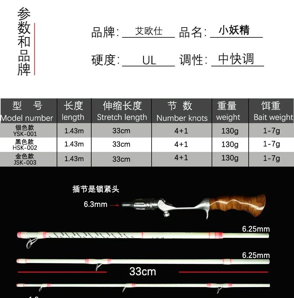 Aioushi Very short multi-section portable travel fiberglass trout rod Fuji A ring