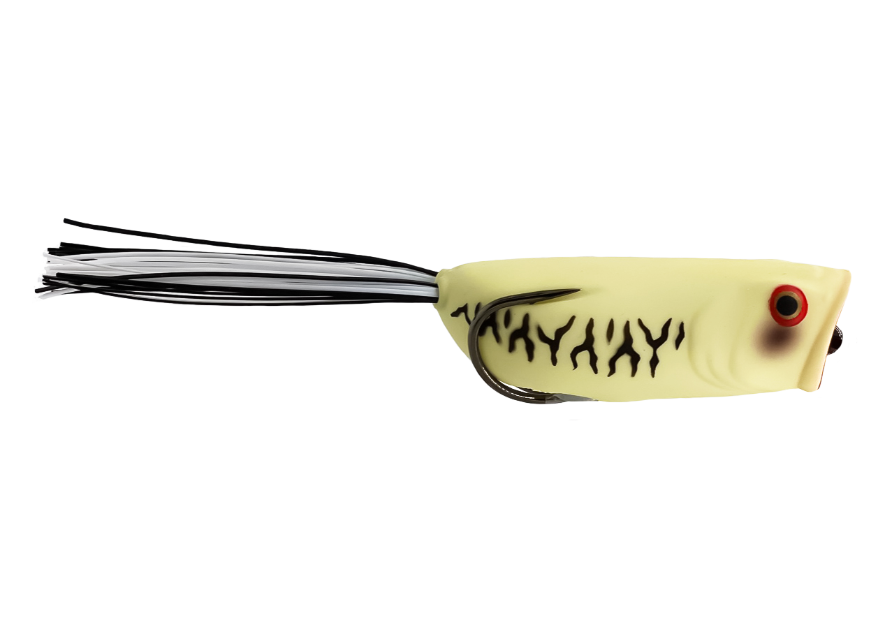 The specially angled nose and flat belly is designed to come up and over cover while preventing body roll that is seen on keeled belly frogs The body design and stream lined legs increase walking ability while keeping the leg material away from the hook points to prevent fouling. The Thumper is built around a custom designed hook that places the hook angles on top of the body for a superior hook up ratio. The custom made leak stop plug was built to help keep water out of the frog.