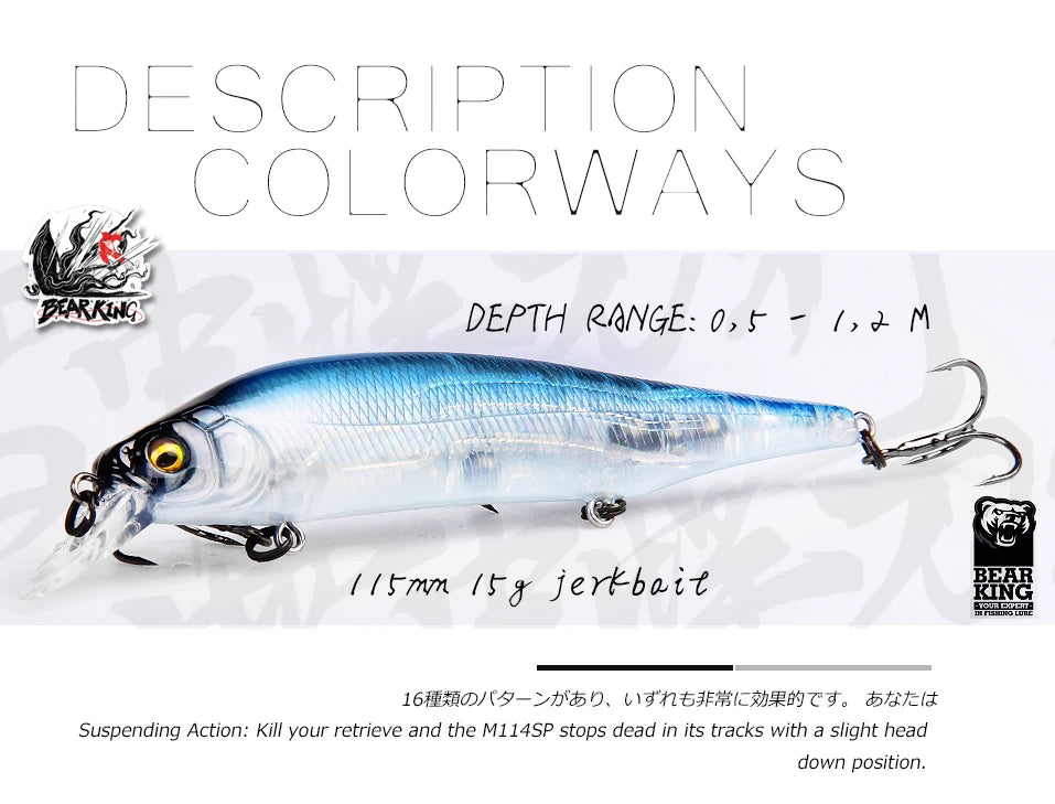 BEARKING 115mm 15g SP Tungsten weight system Top fishing lures minnow crank wobbler quality fishing tackle hooks for fishing