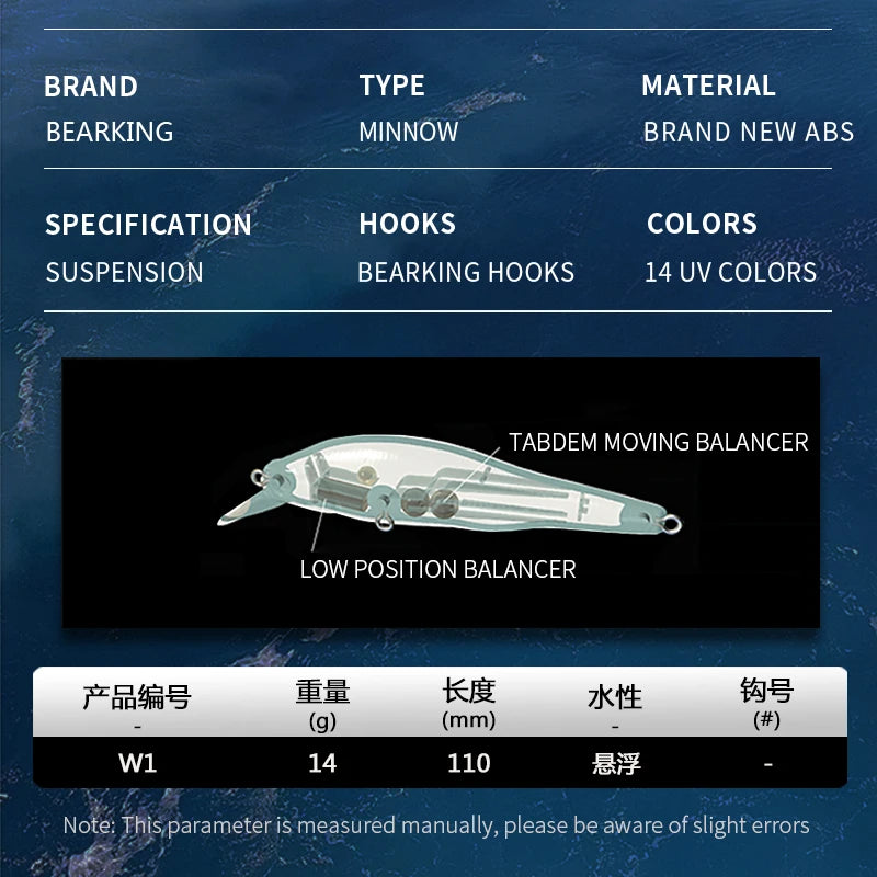 Bearking 11cm 14g SP dive 1.5m professional Minnow Wobbler fishing lures quality jerkbaits Artificial Bait Predator tackles