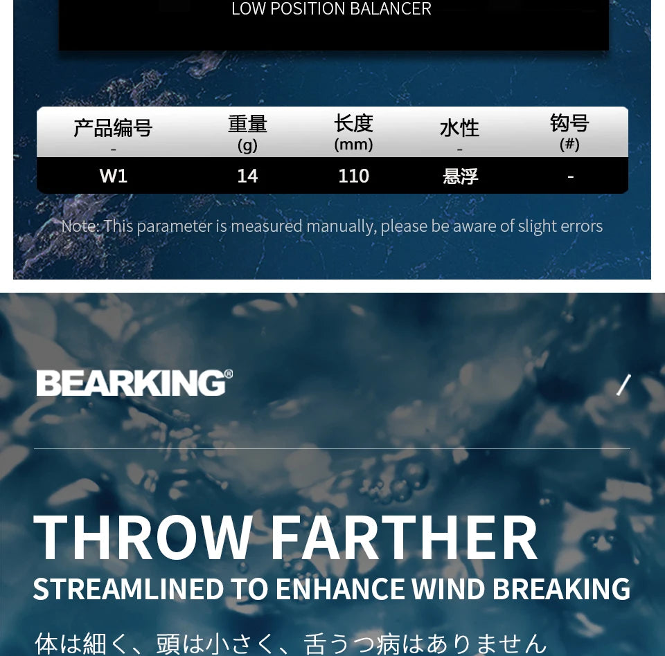1.Bearking 2x strong treble Hooks: it is armed with bearking hooks,stronger power, durable, freshwater seawater universal.