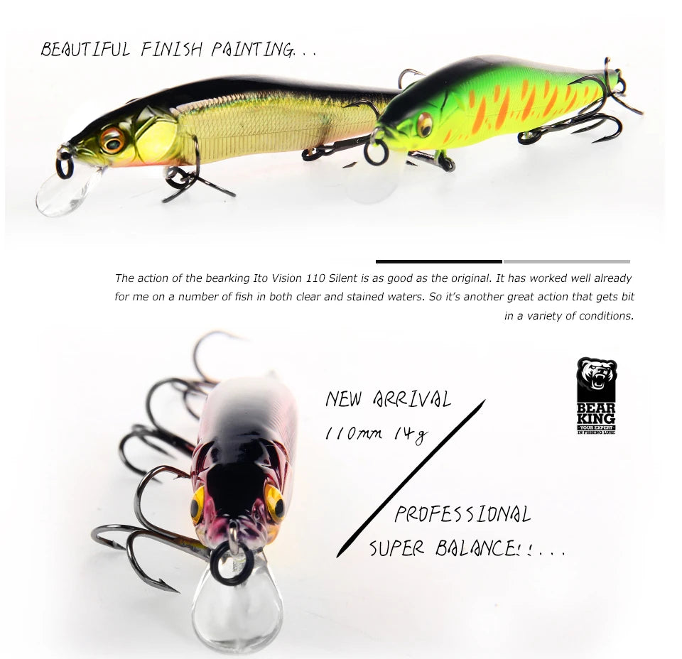 BEARKING 11cm 14g Top Hard Fishing Lures Minnow quality Baits Wobblers good action professional Fishing Tackles artificial