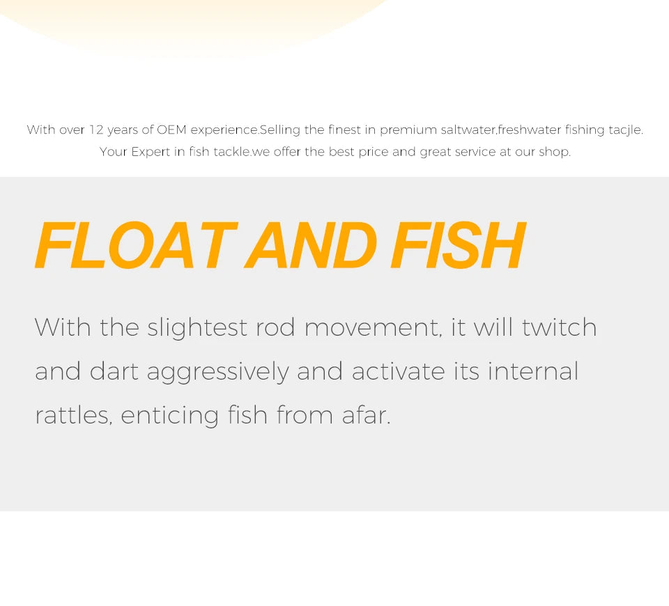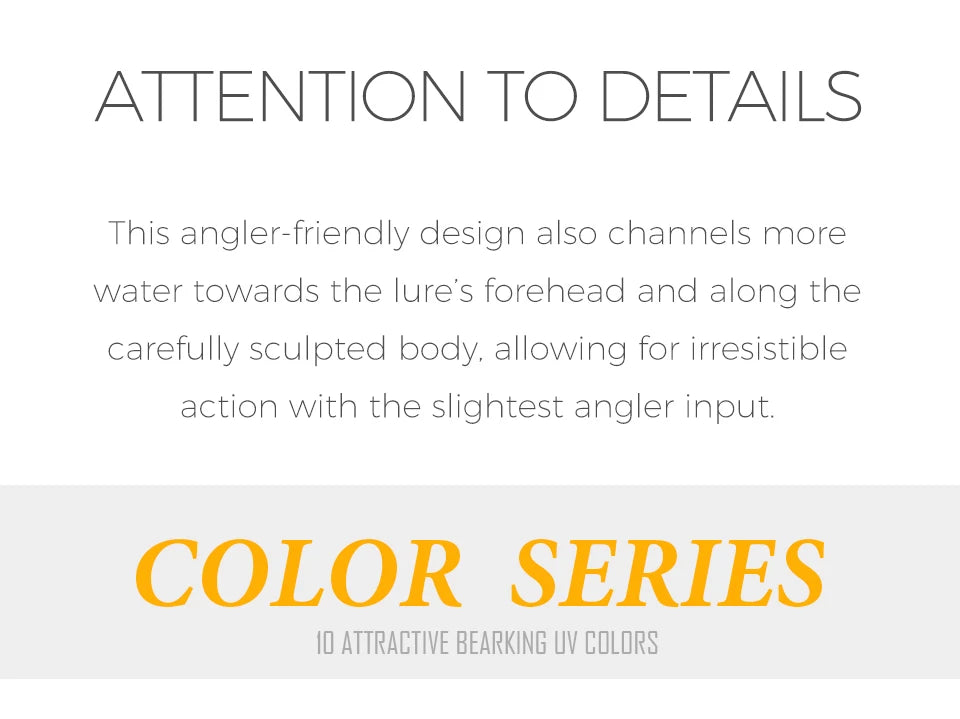 6.The detailed eyes are attached by hand after an approvedquality control inspection of the lure body.
