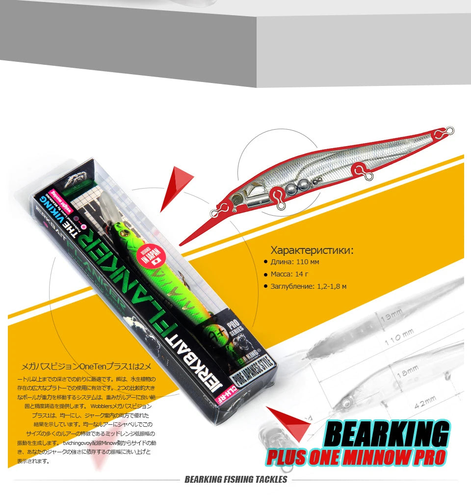 Bearking professional Wobbler 110mm 14g Dive 1.8m SP Fishing Lures Artificial Bait Predator Tackle jerkbaits for pike and bass