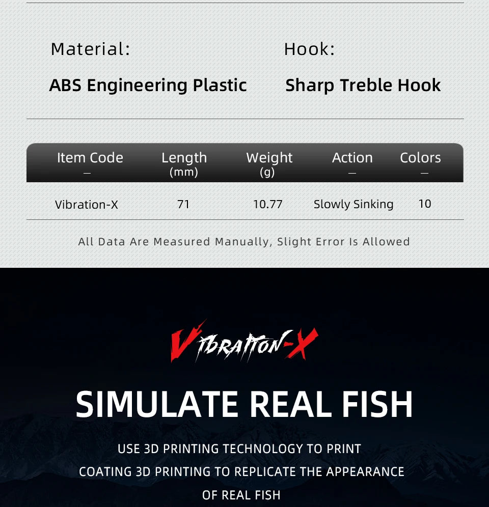 Get ready to catch the biggest fish with the Bearking Vibration X lure. This top-of-the-line product is designed to attract fish in all types of water bodies, from oceans to lakes and rivers. Made with high-quality materials, this lure is built to last and withstand the toughest fishing conditions.