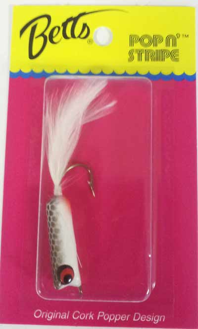 The long, slender, bullet-shaped body and sporty tail feathers of Betts® Pop N' Stripe Popper Fly creates a popper with more wiggle. Firmly cemented onto a Mustad hook for enduring performance, this fly makes days on the water more successful.
