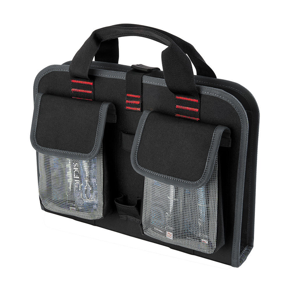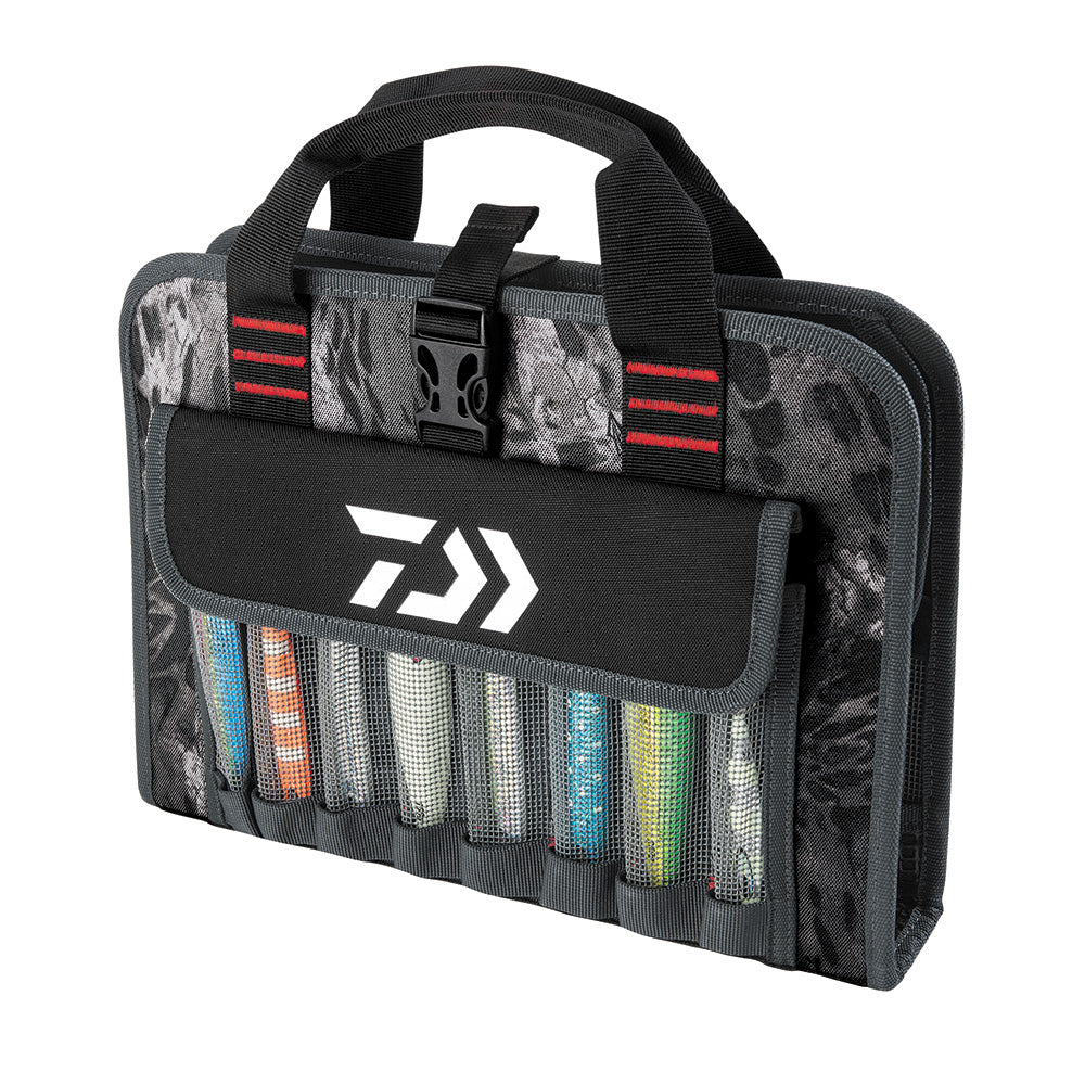Premium vinyl construction stores all your jigs with easy access. 5 Velcro-separated compartments and a buckle latch top can be opened to allow anglers to organize tackle to fit their specific needs.