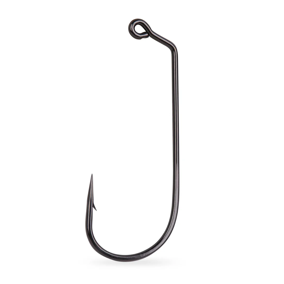 Premium jig hook that is extra strong with a 60° shank,wide round bend, ultra point, Nor tempered and black nickel finish. Fits most molds that use an Eagle Claw 410 or 413 style hook.