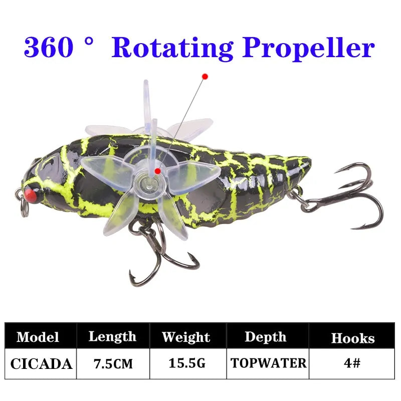 Boost your chances of catching fish with the Rotating Propeller Fishing Lure, designed to create enticing ripples and vibrations on the water surface. Its rotating propeller action mimics distressed baitfish, attracting predatory fish to strike.