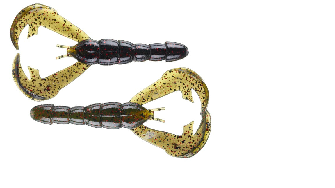 A slender, 4" crawfish imitator, the soft plastic Strike King Rage Tail Craw embeds its famous internal rattle in the tail to draw fish. It's a noisy little beast! The glass rattle chamber does not interfere with the craw's natural, lifelike action or mess with your hookset.