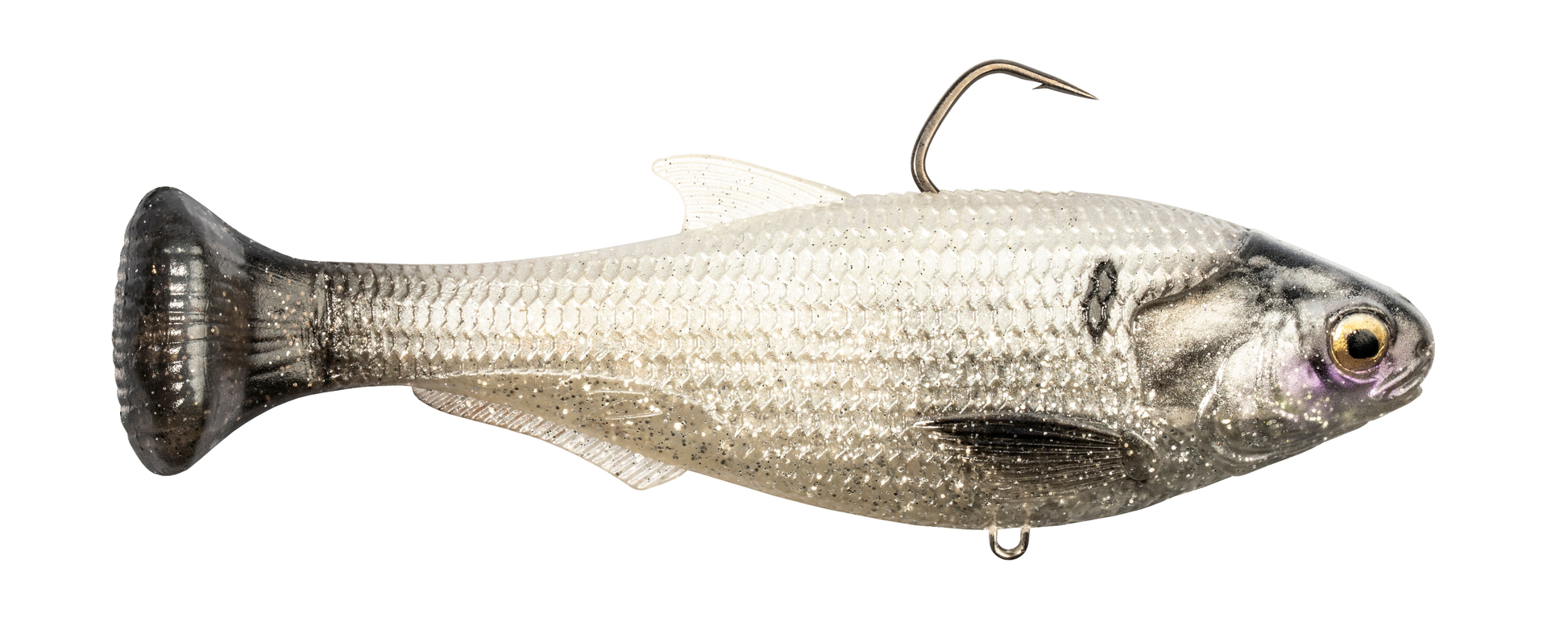 The Shadtron™ LT is a lifelike swimbait with an innovative over/under line-through harness for top or belly hook rigging. Its wedge-shaped tail creates a genuine shad motion at various speeds. The detailed body includes accurate gill, eye, scale, and fin features, while its 10X Tough ElaZtech® material ensures durability. Custom heavy-duty 3/0 or 5/0 sickle hook included. The balanced weighted harness and buoyant material keep the lure balanced, even on slow retrieves, during the fall, and at rest.