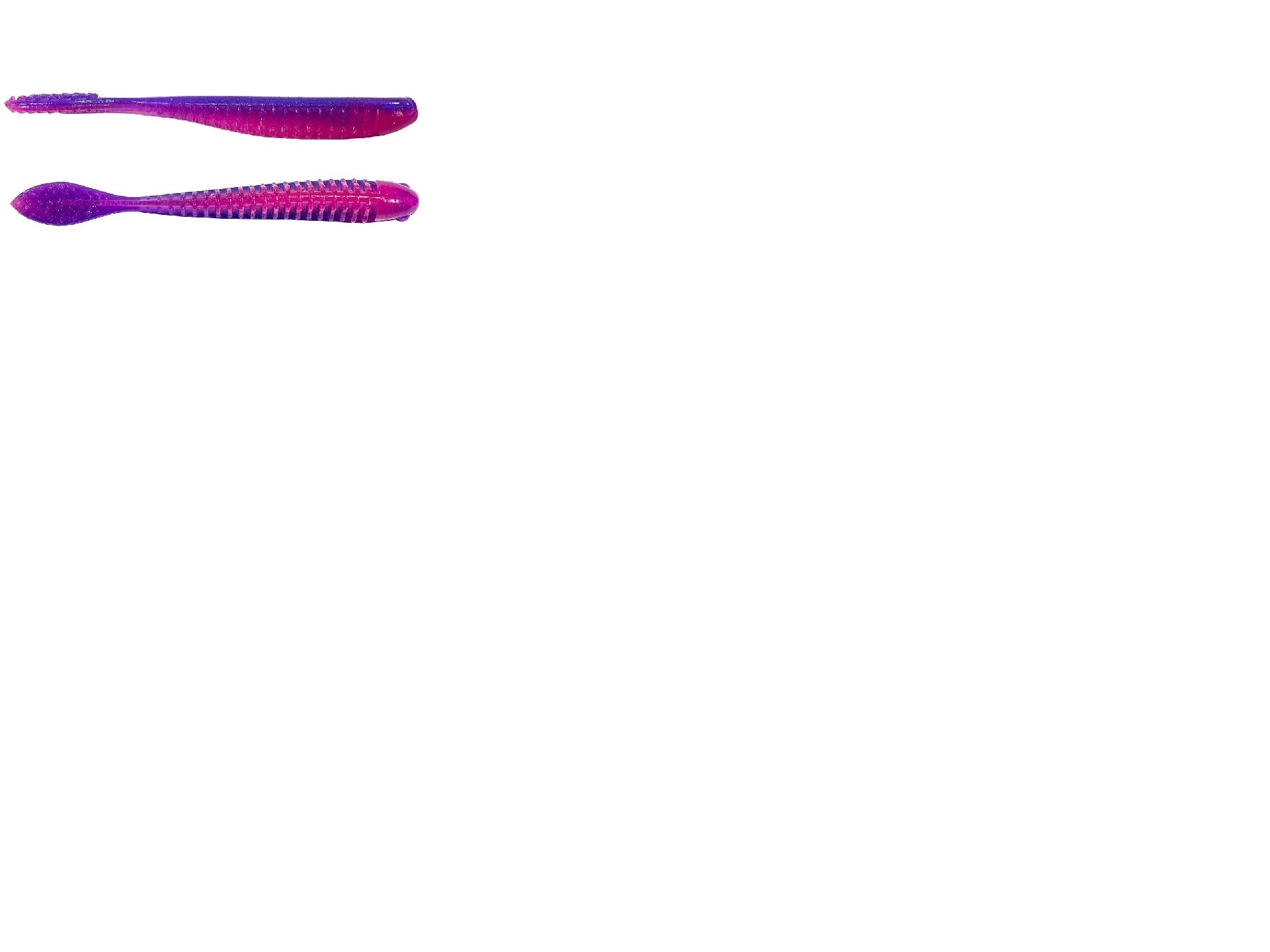 A drop-shotter’s dream, these 3.5” and 4” ribbed, spade-tail minnows are built with salt-impregnated 10X Tough ElaZtech® superplastic to ensure that they sit with a slightly tail-up posture at rest and that they don’t rip or tear when nose-hooked.
