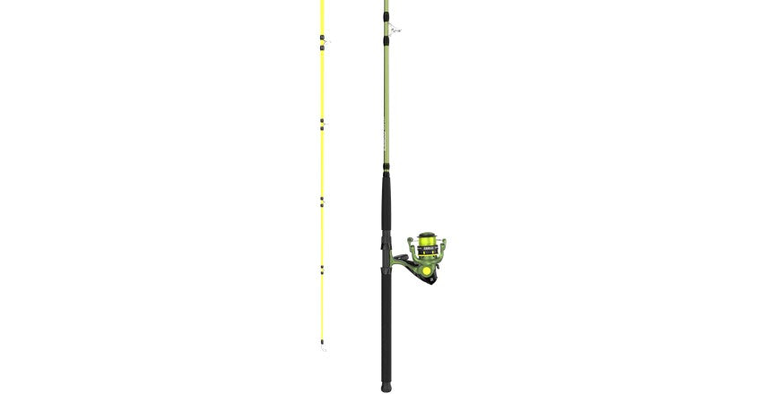 Specifically designed to haul catfish out of their hiding spots, Zebco’s Big Cat spinning combo is durable and ready for any tussle with a huge catch. A match for any catfish, this combo is built with all-metal gears, a smooth, multi-layered drag stack, and a ball bearing system in the reel, while the rod provides even more durability with a strong fiberglass rod and double-footed stainless-steel guides. A high-visibility rod tip and 25 lb hi-vis line increase awareness of movement under the water to help anglers snag a catfish with ease.